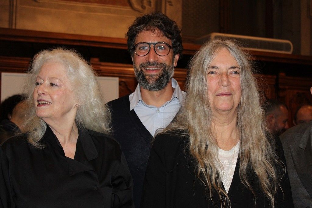 Il secondo momento con la grande cantautrice, poetessa e artista statunitense Patti Smith, la fotografa Lynn Davis ed il musicista Tony Shanahan arrivati poco prima alle 18.45, in silenzio e quasi inosservati.