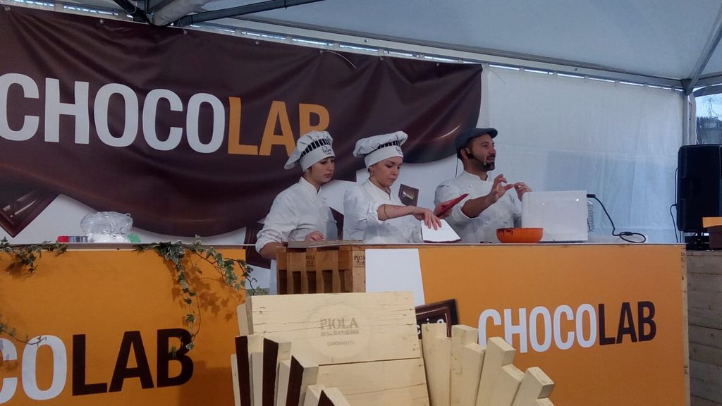 La manifestazione “Cioccolatò“ di Torino ha ospitato gli studenti della 4a H, Molon S. e Gasparini E., che con il professor Torre hanno tenuto una lezione sulla pralineria e sul cioccolato artistico all’interno dello spazio dimostrazioni in piazza San Carlo a Torino.