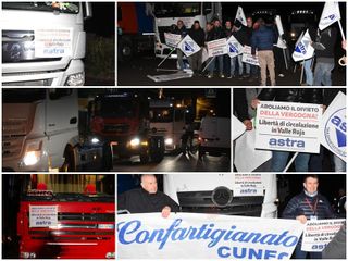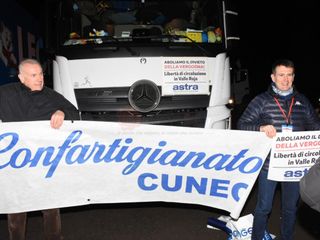 Una protesta organizzata da Astra Trasporti Associati Cuneo in collaborazione con Confartigianato Cuneo: “Per la libertà di circolazione e il diritto al lavoro occorre cancellare il divieto di transito ai mezzi sopra le 19 tonnellate emanato dalle autorità francesi”. Una decisione assunta, ben 18 mesi fa, in modo unilaterale e respingendo ogni proposta di dialogo, dai sindaci di Tenda, La Brigue, Breil, Fontan e Saorge.