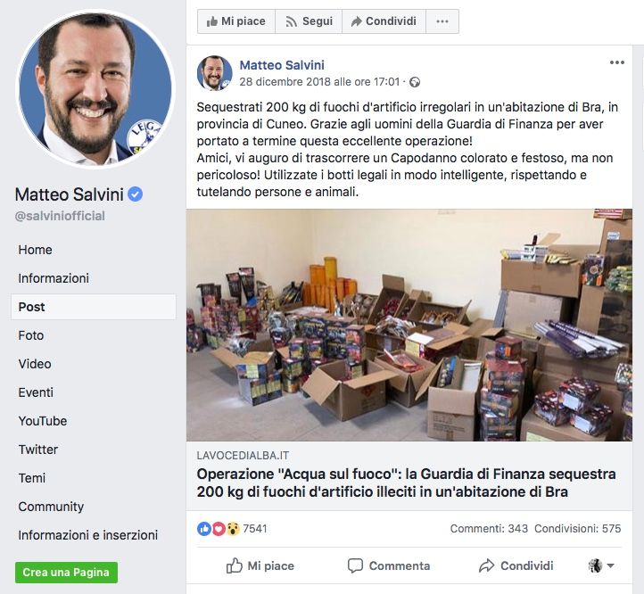 Pochi giorni fa l’ennesima incursione in Granda, in un’uscita che peraltro ci coinvolge direttamente. Nell’intento, in questo caso certamente più vicino ai suoi doveri istituzionali, di congratularsi con le forze dell’ordine per un’operazione appena conclusa con successo, il viceministro ha infatti fatto suo un "post" de "La Voce di Alba": "Sequestrati 200 kg di fuochi d’artificio irregolari in un’abitazione di Bra, in provincia di Cuneo. Grazie agli uomini della Guardia di Finanza per aver portato a termine questa eccellente operazione! (…)". Il post proseguiva con l’invito "a trascorrere un Capodanno colorato e festoso, ma non pericoloso" e a "utilizzare i botti legali in modo intelligente, rispettando e tutelando persone e animali".