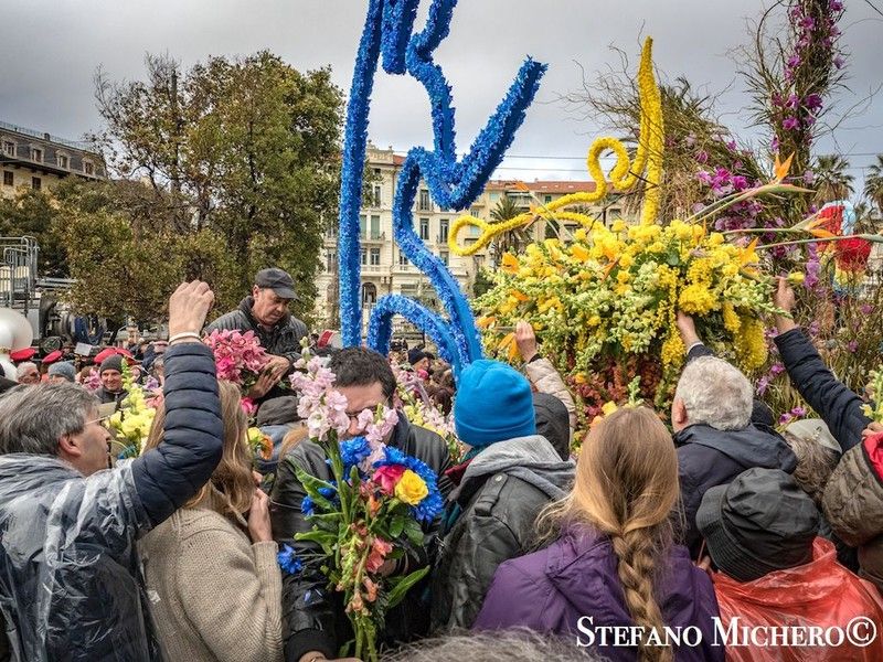 La sfilata di domenica prende il via alle 10.30. Previsti 3 giri, con il percorso ad anello si snoda lungo le seguenti vie e piazze cittadine: Lungomare Italo Calvino - piazzale Carlo Dapporto -ex Stazione Ferroviaria - tratto pista ciclabile parallelo a via Nino Bixio sino a Giardini Vittorio Veneto. L'ultimo giro viene ripreso dalle telecamere di Linea Verde (Rai 1). L'accesso al percorso è libero e gratuito. I posti a sedere (tribune) sono a pagamento e sono posizionati sul piazzale Carlo Dapporto: costo 20 euro. Soste auto e bus: la tariffa per la sosta degli autobus è di 50 euro con possibilità di parcheggio a Mercato dei Fiori in Valle Armea (uscita Arma di Taggia) e nell'area di Pian di Pomi (uscita Sanremo Ovest), con esclusione dei mezzi (autobus) con ospiti nelle strutturi ricettive di Sanremo. La sosta delle autovetture è consigliata nelle aree parcheggio di Pian di Poma (usciu Sanremo Ovest) e Mercato dei Fiori in Via Armea (uscita Arma di Taggia). Tariffi 15 euro. Inoltre, si segnalano "Parcheggi autovetture" (h 24) nel centro città (a pagamento) Palafiori in corso Garibaldi (posti 321); nuova Stazione Ferroviaria in corsc Cavallotti (posti 120).