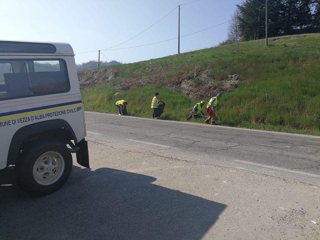 Gilet Gialli catarifrangenti, guanti e pinze alla mano, stivali ai piedi, una decina di volontari del gruppo comunale "Nonni Attivi" di Vezza d'Alba hanno raccolto ben quindici sacchi colmi di rifiuti abbandonati lungo i fossi delle strade comunali e provinciali vezzesi fino a raggiungere piazza San Carlo dove ci sono le scuole. Principalmente sono stati recuperati: bottiglie in plastica e in vetro, lattine, fazzoletti di carta, pacchetti vuoti di sigarette, nylon, borse contenente rifiuti.