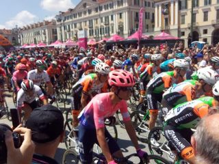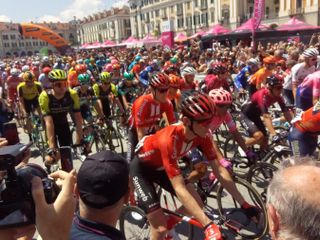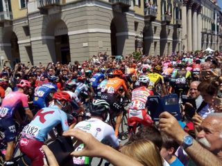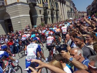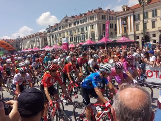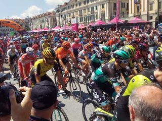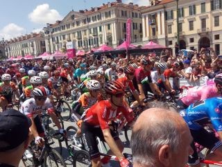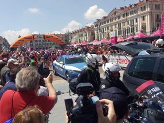 E' partita alle 13.17 da piazza Galimberti la tappa 12 del Giro d'Italia: la mitica Cuneo-Pinerolo, dedicata alla leggenda di Fausto Coppi. Tappa che riporta alla mente l’impresa del Campionissimo al Giro d’Italia 1949 quando, da solo in fuga, inflisse oltre 11 minuti a Gino Bartali.