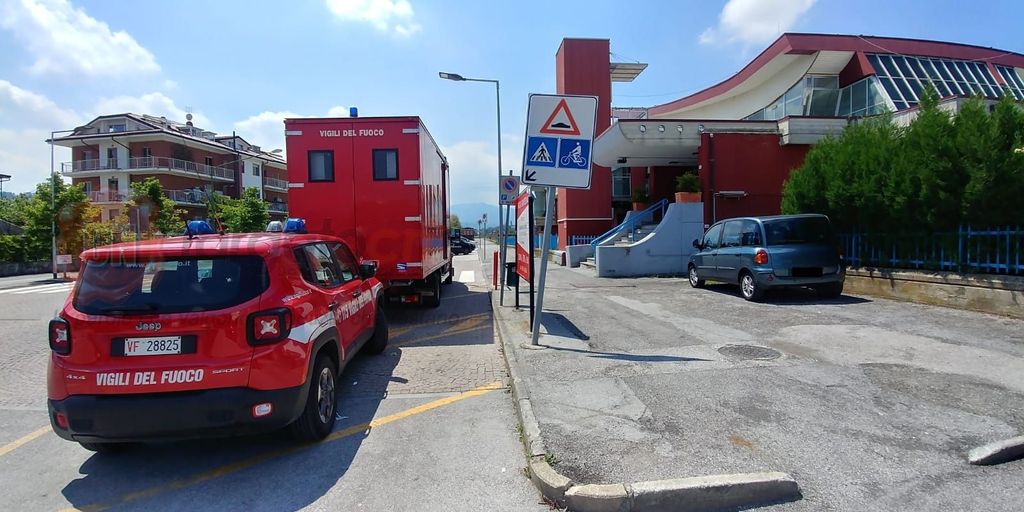 Si sospetta un malfunzionamento del processo di aerazione dell'impianto natatorio. Presenti anche gli uomini del nucleo NBCR (Nucleare, Biologico, Chimico e Radiologico)