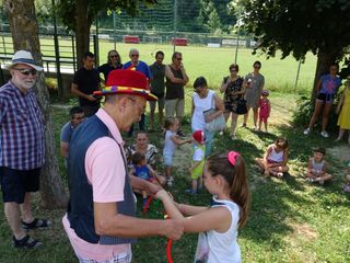 All'ombra dei tigli il mago ha stupito i bambini con i suoi divertenti trucchi e i volontari hanno offerto focaccia, anguria e acqua fresca. A seguire divertimento per tutti con i nuovi giochi e relax sotto il gazebo offerto dall’associazione 'L Torion.
