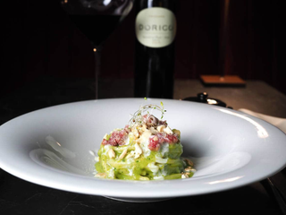 Non banale la cantina, ancora in fase di assestamento. Imperdibile per gli amanti delle bollicine, lo Champagne Encry del nostro connazionale Enrico Baldin, conquistatore di vigne in terra straniera. Interessante e non scontata la classificazione delle bottiglie per vitigno. A pranzo: primo, dessert con acqua e caffè a 20 €!