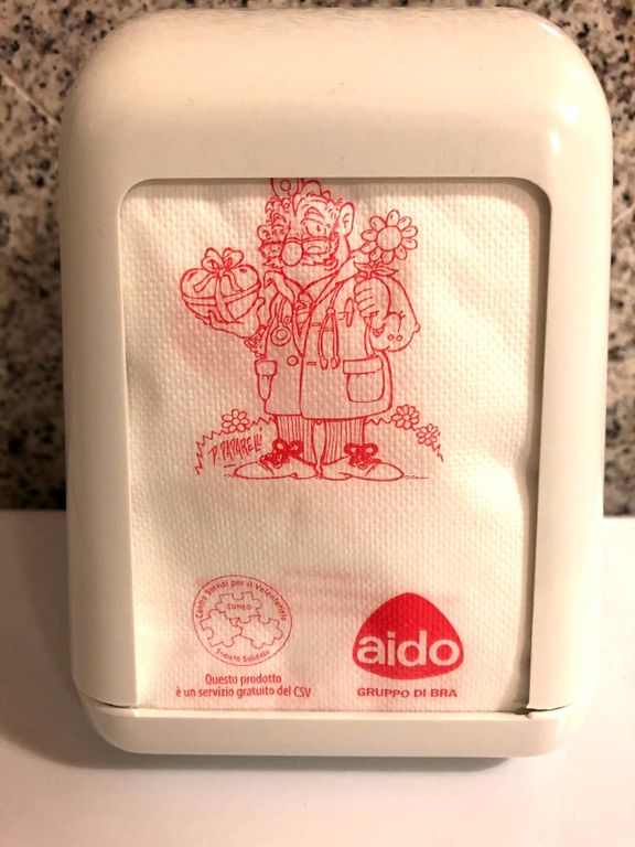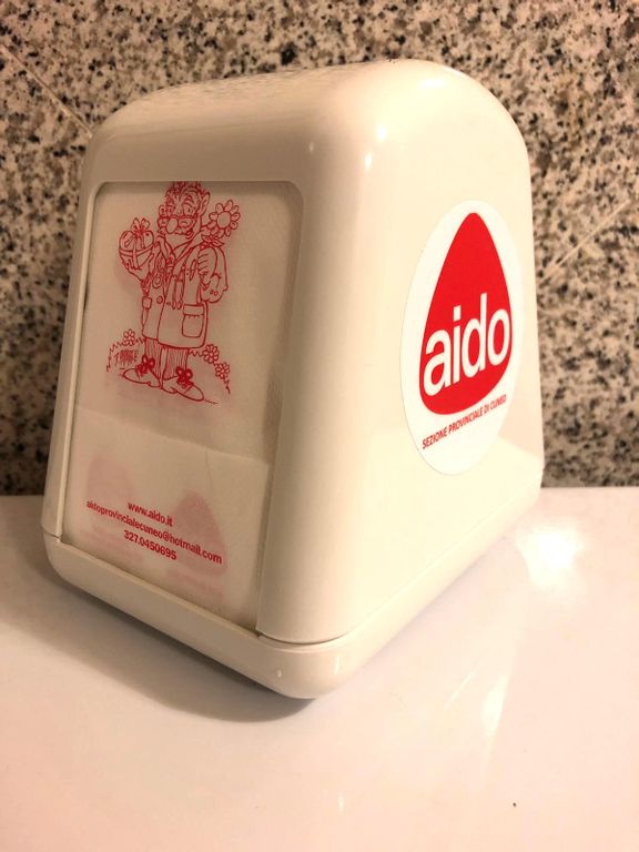 Grazie al genio creativo di un amico di sempre di Aido, Danilo Paparelli, e il supporto del Csv "Società Solidale" di Cuneo, in questi giorni di fine estate si sta completando la distribuzione di dispenser utili alla distribuzione di tovagliolini che ricorderanno la donazione di organi, tessuti e cellule con una simpatica mascotte.