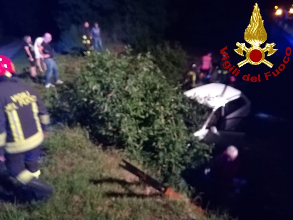 Incidente nella notte a Barge: auto finisce in un rio lungo la Provinciale 28 (FOTO)