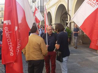 Il presidio sindacale si è tenuto alle ore 11 di oggi, venerdì 13 settembre, in via Roma a seguito dell’assemblea che si è tenuta questa mattina nella Sala Incontri della Fondazione CRC.