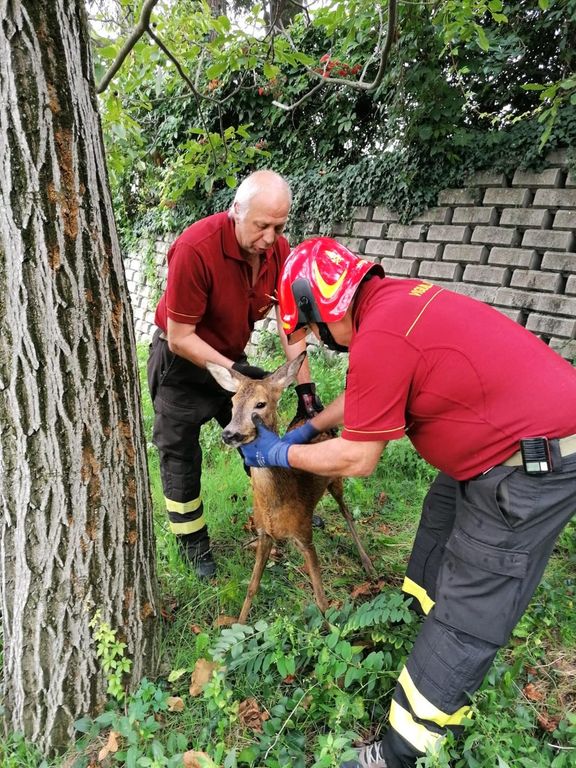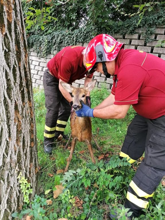 Bra, Vigili del Fuoco liberano un capriolo imprigionato in una vasca di scolo