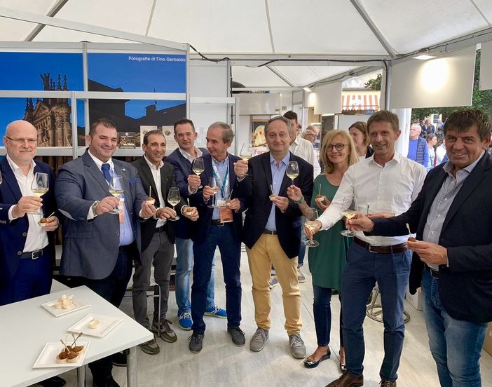 Nella foto, da sinistra: Luigi Barbero presidente Ente Turismo Langhe Monferrato Roero, Mario Fugaro presidente Wonderful, Marco Scuderi vice presidente Ente Fiera Internazionale del Tartufo Bianco d'Alba, Enzo Basso di Ascom Bra, Gianni Fogliano sindaco di Bra, Biagio Conterno vice sindaco Bra, Mariella Ambrogio consigliere di Wonderful, Fabrizio Pace direttore Associazione Commercianti Albesi, Giorgio Grosso di Ascom Bra.
