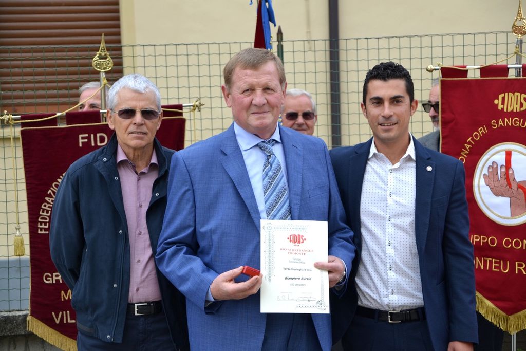 Complimenti a tutti i donatori in particolare a Luigi Bonetto (100 donazioni) e Gianpiero Burzio (103 donazioni) per la terza medaglia d'oro, e a Michele Raviola (76) e Silvano Ceratto (79) per la seconda medaglia d'oro.