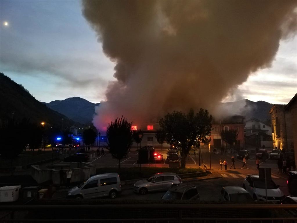 Incendio alle ex Fonti San Maurizio: fiamme e fumo a Roccaforte Mondovì (GALLERY e VIDEO)