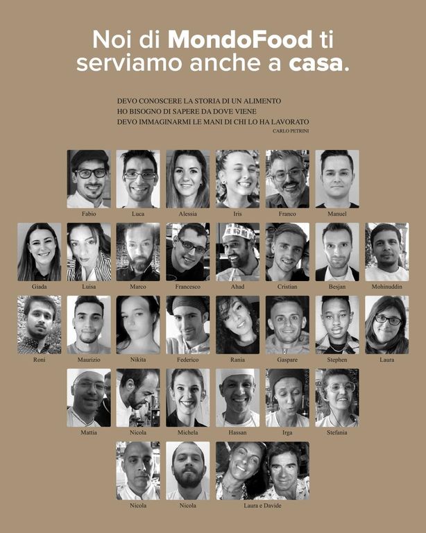 Mondofood continua con il delivery interpretandolo a modo suo per mantenere vivo il legame con la propria clientela storica e per creare rapporti con i nuovi clienti. Il servizio viene effettuato direttamente dal personale che non si limita a consegnare cibo a domicilio, ma porta sempre a casa del cliente un sorriso e un abbraccio anche se figurativo.