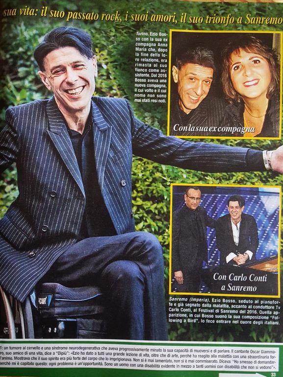 Sul numero 21 - 29 maggio 2020, il settimanale Di Più (Cairo Editore) ha ripercorso i momenti salienti della carriera di questo grande artista, culminata nel 2016 con l’esibizione sul palco del Festival in cui aveva emozionato Sanremo e il mondo, raccontando la sua storia. “La musica ci insegna la cosa più importante che esista: ascoltare”, disse il maestro Ezio Bosso davanti alla platea dell’Ariston ed a svariati milioni di telespettatori.