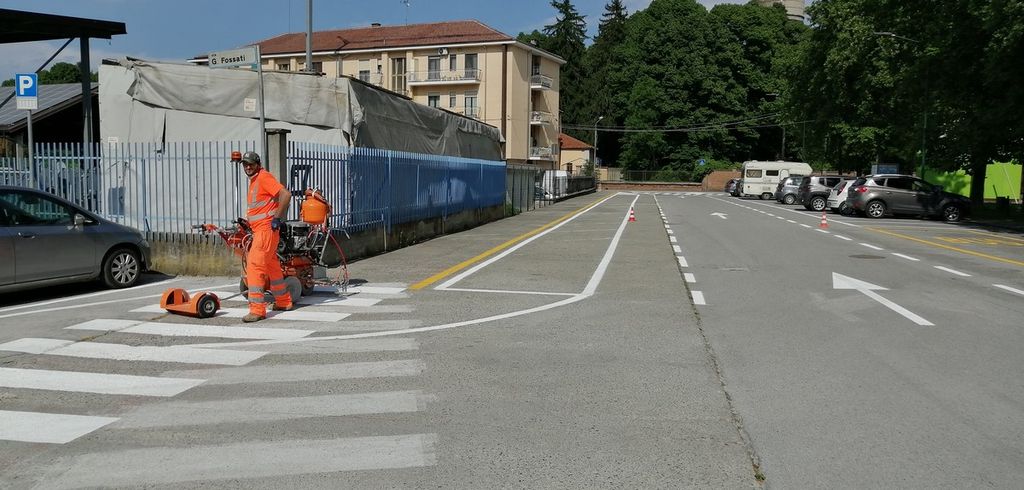 “La novità - spiega il titolare della ditta, Giovanni Tuninetti - è riuscire a spruzzare questo prodotto con stesse macchine per fare le strisce pedonali. L’intervento nella nostra città è di modeste porzioni, lo effettueremo sui quattro passaggi pedonali realizzati il mese scorso nei pressi delle scuole medie e del giardino antistante. Solitamente si fa in grandi spazi, la differenza è che noi riusciremo a farlo su superfici molto più ridotte”.