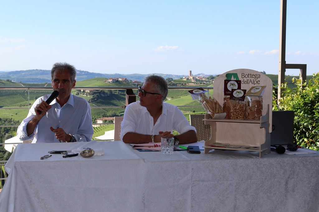 Sotto la regia del presidente di Bottega dell’Alpe, Silvano Icardi, al microfono si sono alternati Chiara Marenda (titolare dell’azienda agricola Propi Bun di Cerretto Langhe) e Valter Bera dell’azienda agricola Bera di Neviglie, introdotti rispettivamente dalla responsabile amministrativa di Bottega dell’Alpe Lisa Torchio e dalla sommelier Angela Tartaglia, per un dialogo “a parole” di due filiere di prodotti che ben si sposano anche “a tavola”, come confermato in chiusura da Ivan Rabino e Marco Robaldo, rappresentanti del Consorzio di tutela Langarola classica - nocciola storica dell’Alta Langa, nato con l’obiettivo di dare un marchio di qualità alle nocciole prodotte nella zona storicamente più vocata per questo frutto, tra Cravanzana, Lequio Berria e Serravalle Langhe.