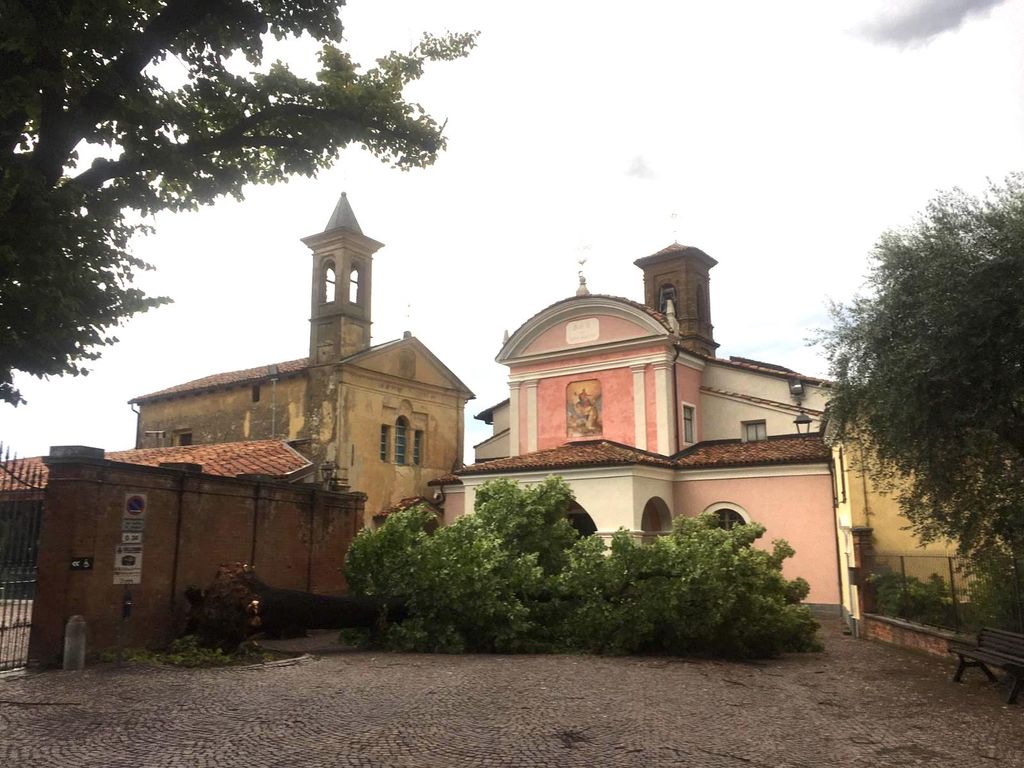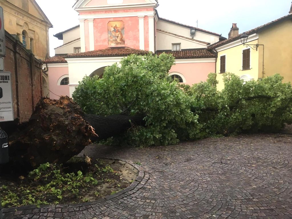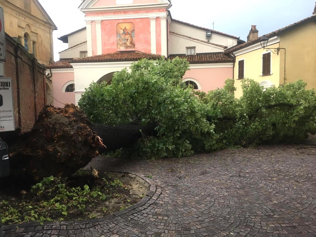 A creare maggiore nocumento è stato soprattutto il forte vento spirato su tutta la zona a partire dalle 19. Raffiche fortissime che a Barolo hanno causato lo schianto di uno dei due maestosi esemplari di tiglio che da almeno un secolo adornano l'ingresso del castello.