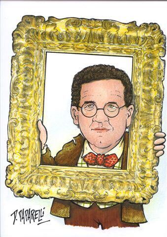 È Danilo Paparelli, famoso vignettista piemontese, grande amico del Caffè Letterario di Bra, a ricordare il personaggio di profonda cultura e sempre originale con il suo papillon.