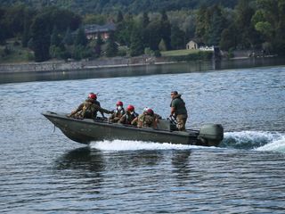 Nel Lago Grande di Avigliana, durante la prima fase dell’esercitazione, un mezzo cingolato BV206S7 ha effettuato un movimento anfibio sulla superficie del lago, attività necessaria per mantenere elevati i livelli addestrativi del personale al pilotaggio anfibio. Uno speciale barchino del 32° reggimento Genio Guastatori della Taurinense, ha quindi caricato a bordo la prima delle Squadre Soccorso Alpino Militare, che hanno poi soccorso un disperso. L’addestramento a questo tipo di impiego consente ai militari di poter intervenire in caso di eventi alluvionali, garantendo la capacità di superare ostacoli e interruzioni alla viabilità sia tramite gli speciali mezzi “all-terrain” in dotazione, supportati da elicotteri di media capacità.