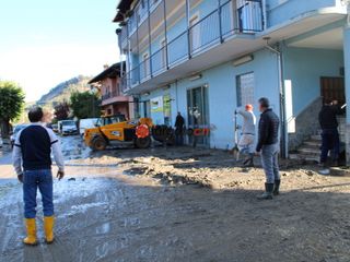 Dopo la pioggia di ieri, la Val Tanarosi è svegliata con il sole: tutti al lavoro per rimuovere il fango