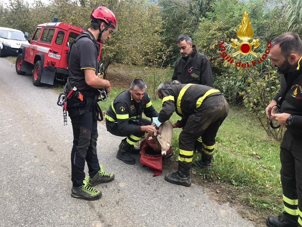 Mango, cane finisce in un dirupo: lo recuperano i vigili del fuoco
