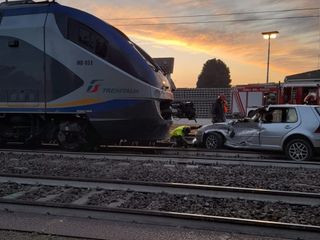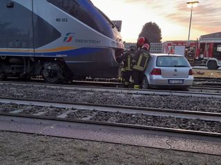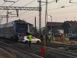 Treno travolge una macchina sui binari a Racconigi: ferita in modo non grave la conducente dell'auto (FOTO)