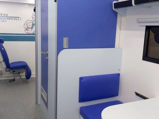 Il mezzo è stato concepito con grande attenzione e specificità dal punto di vista tecnico e igienistico, tali da garantire un percorso di sicurezza di accesso e uscita; possibilità di dotazione strumentale importante; un’accoglienza e un confort di altissimo livello.