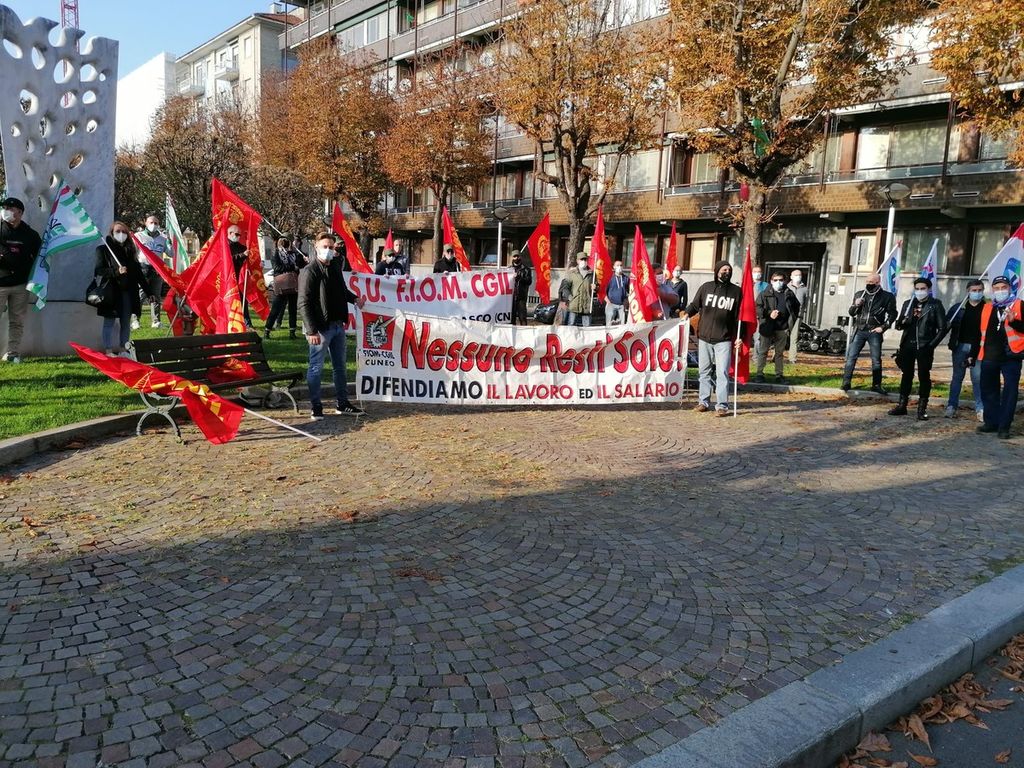 “Quello che importa oggi non è riempire le piazze quanto svuotare le aziende. - ha dichiarato Davide Mollo segretario Fiom Cgil Cuneo - la data è simbolica perché è un anno esatto da quando presentavamo le nostre rivendicazioni sui contratti nazionali. ma non c’è stata risposta adeguata dagli industriali. Il tentativo di riprenderci il contratto nazionale è andato al cuore dei lavoratori perché oggi abbiamo ricevuto dalle fabbriche grandi adesioni. Un numero che non ci aspettavamo."