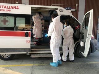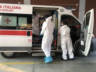 Doppi guanti, visiera protettiva, calzari e tuta. Così i volontari della Croce Rossa Italiana di Savigliano si preparano per uscire e rispondere a una richiesta di intervento.