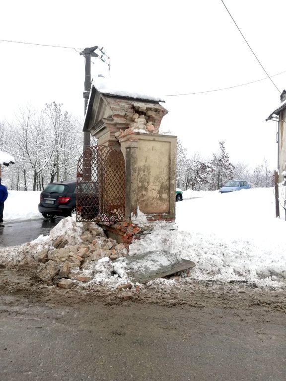Danni ingenti allo storico manufatto. Dal sindaco Livio Genesio un appello a eventuali testimoni: "Segnalateci elementi utili a identificare quel camion"