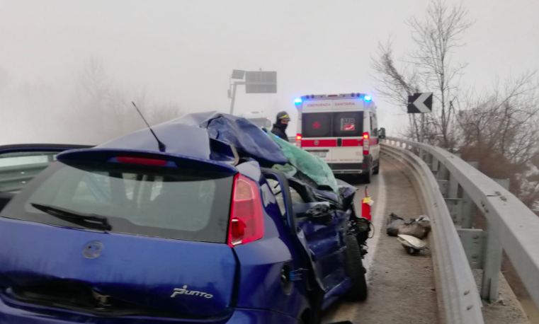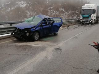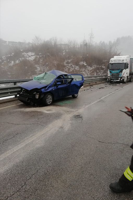 L'auto è andata fuori strada nei pressi del cimitero sulla statale 28, coinvolto anche un mezzo pesante