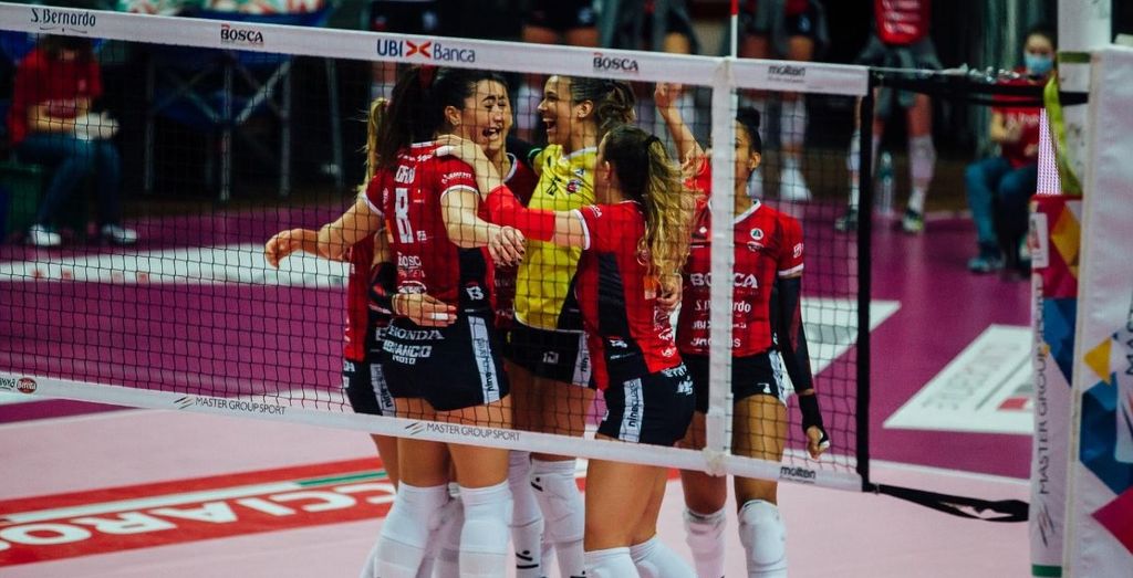 La Bosca S.Bernardo Cuneo lotta alla pari per due set e mezzo poi cede contro le campionesse del mondo dell'Imoco Conegliano che espugnano il Pala UBI Banca con il risultato di 3-1.