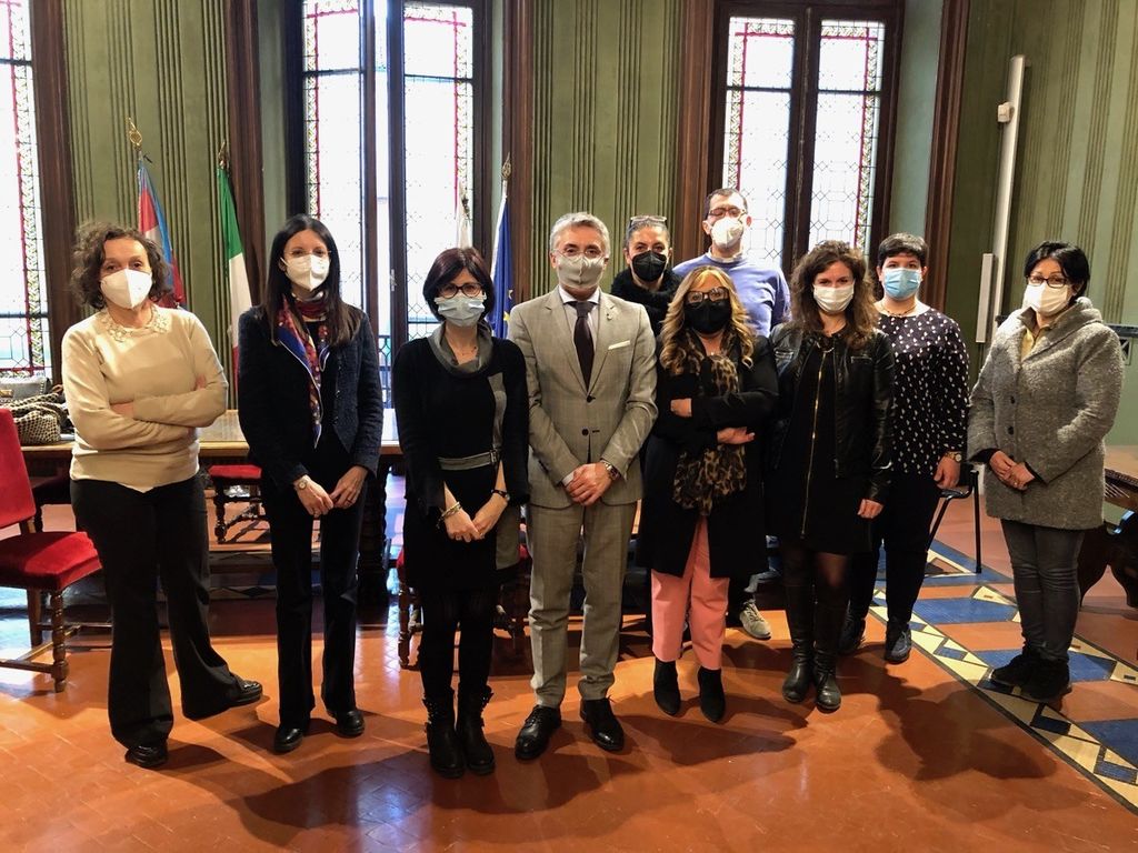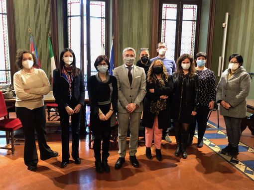 Il nuovo direttivo della Consulta. Al centro, l'assessore Elisa Boschiazzo, il sindaco Carlo Bo e la presidente Silvia Calzolaro