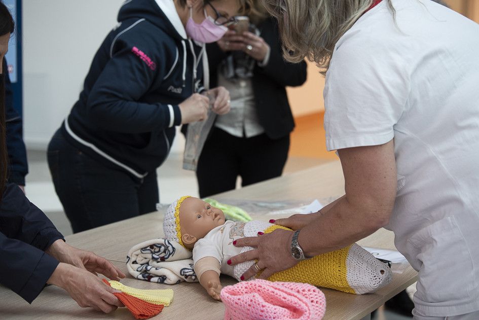 Nei loro interventi hanno ringraziato per la donazione, che ha visto arrivare a Verduno 65 sacchi nanna corredati di babbucce e cuffiette, 55 coperte per la neuropsichiatria infantile, 110 pile e borse e 200 cappelli per l’oncologia, 300 copertine in pile per i bimbi della pediatria.