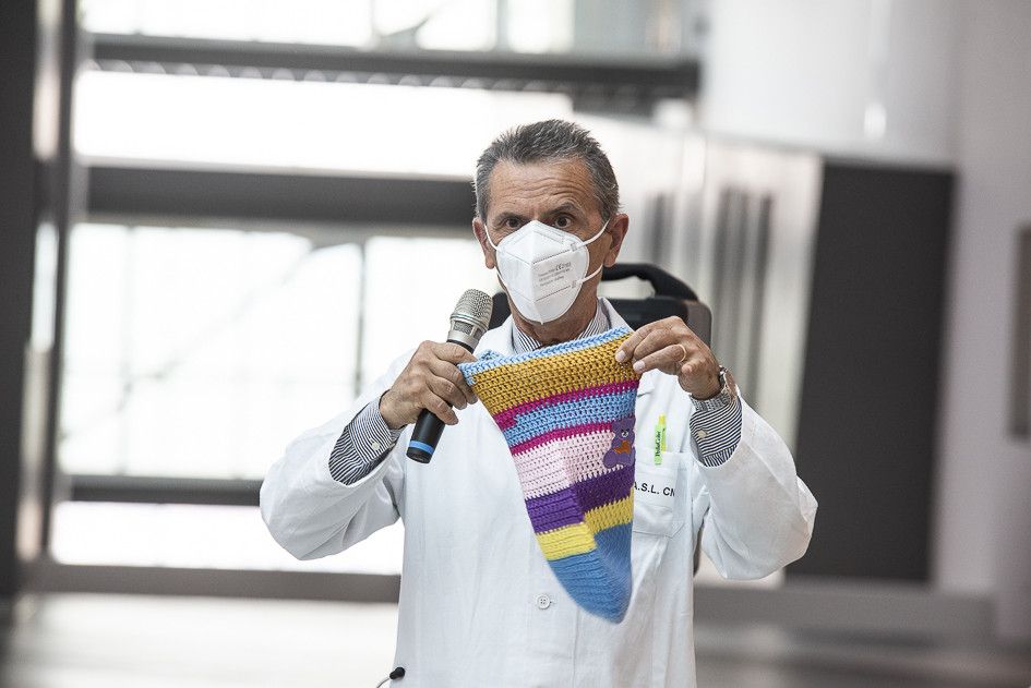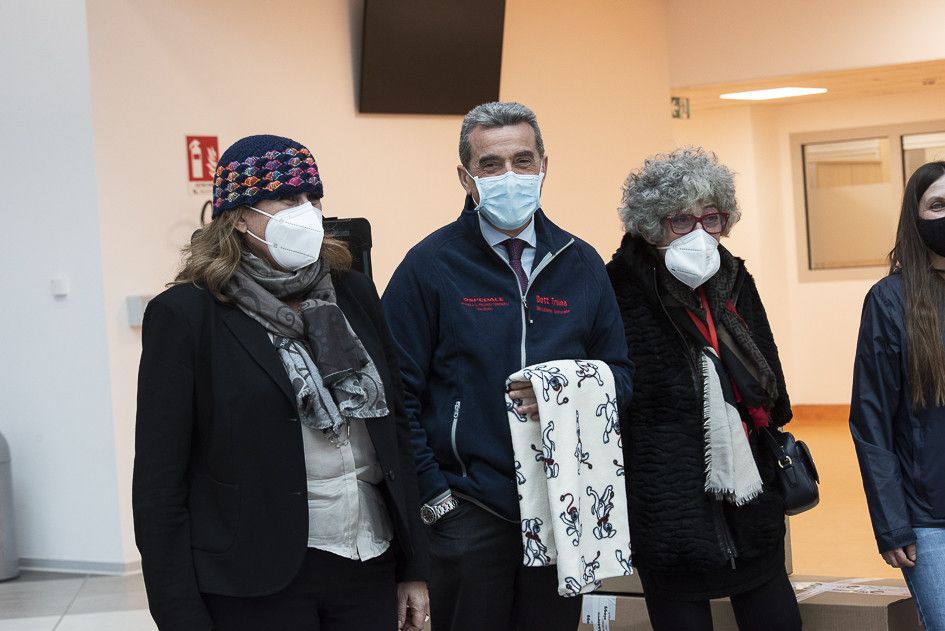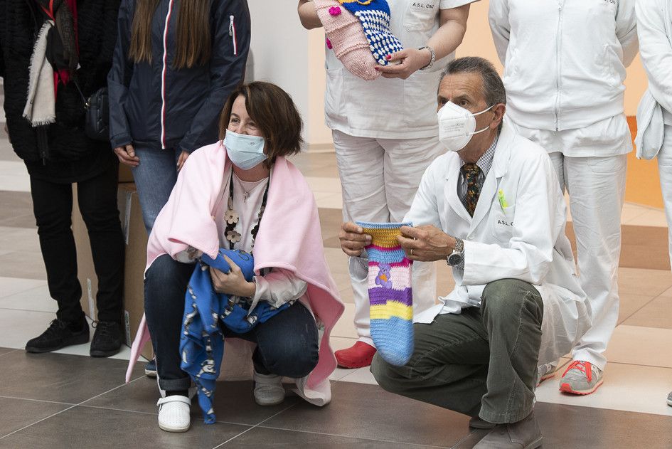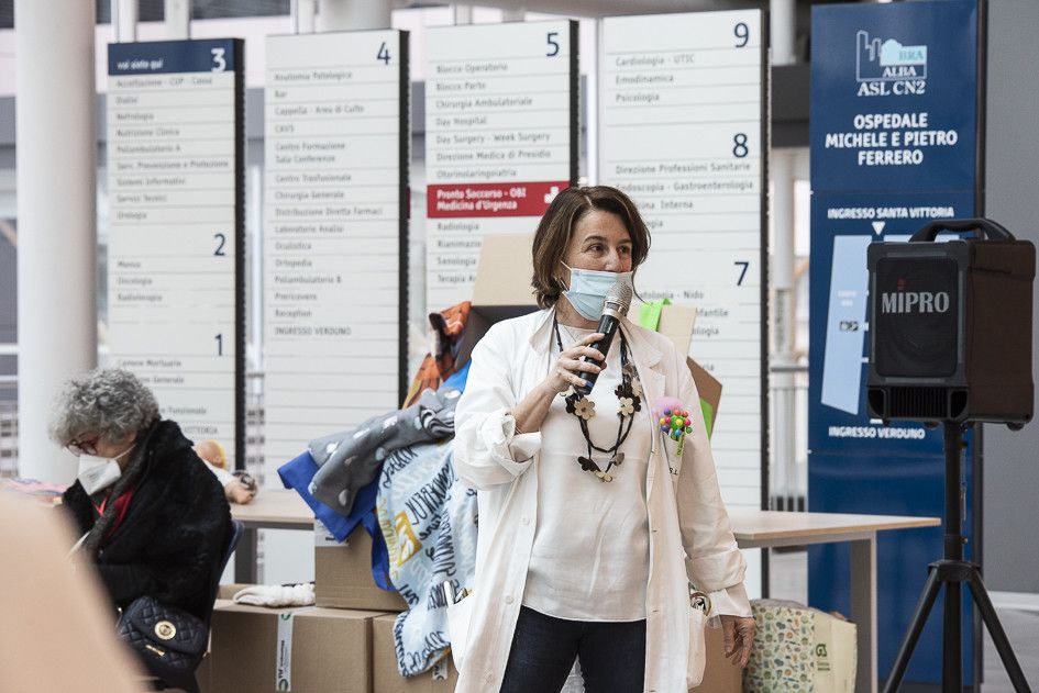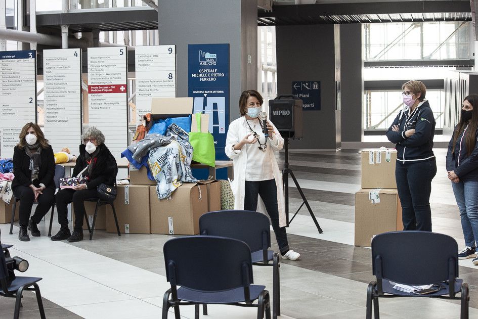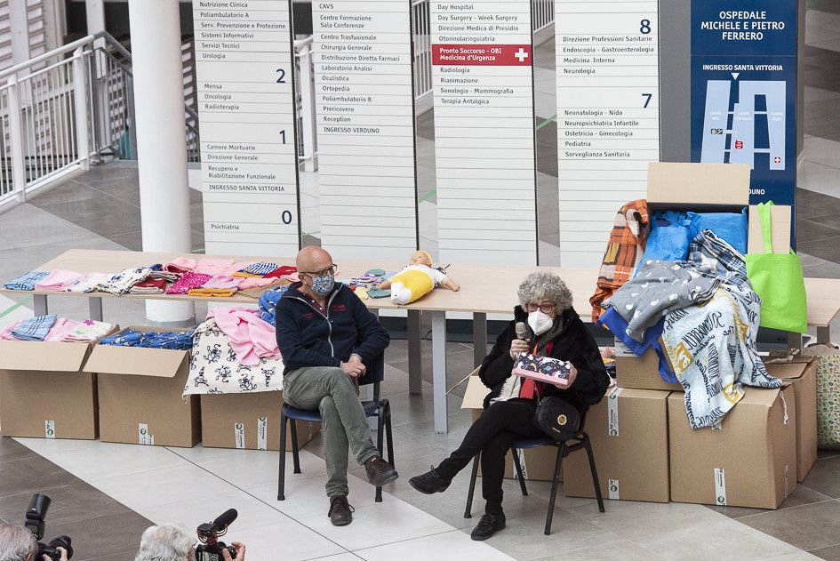 “La cosa bella della mascherina è che vedi gli occhi delle persone – ha spiegato Paola Parazzoli – e impari a leggerli. Quando sono entrata in oncologia e ho visitato la sala della chemioterapia ho visto gli occhi delle persone. E’ lì che mi sono ricordata di una copertina che mi era stata data sette anni prima nella pediatria dell’ospedale di Alba, alla nascita della mia prima figlia, prematura. In quel momento mi sono detta che questo sarebbe stato il mio progetto. La copertina era semplicissima, fatta probabilmente di lana recuperata, quella che per noi vale oro. Avevo un profilo social con quasi 5mila iscritti, così ho pensato di fare un post, non sapendo se avrebbe risposto qualcuno e chi lo avrebbe fatto. Mi hanno risposto 4.500 donne da tutta Italia. Bambine che, da Levice, con il telaio, hanno iniziato a fare copertine. Donne che da una casa circondariale hanno iniziato a fare copertine con l’uncinetto. Nonne che hanno realizzato scialli per i nonni: ancor prima delle 'stanze degli abbracci', noi li abbiamo abbracciati coi nostri scialli”.