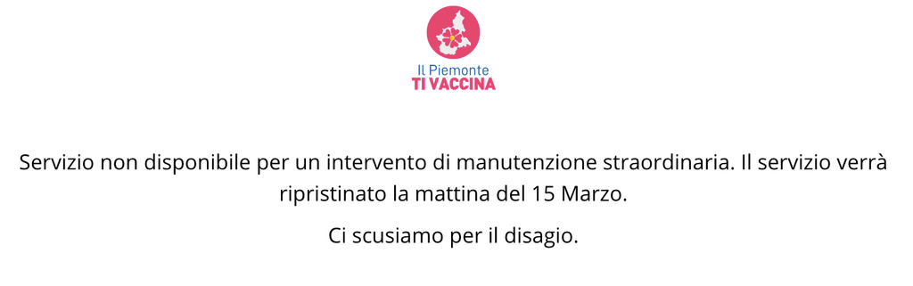 "Servizio non disponibile per un intervento di manutenzione straordinaria. Il servizio verrà ripristinato la mattina del 15 Marzo. Ci scusiamo per il disagio" così si legge sulla home page del sito di prenotazione.