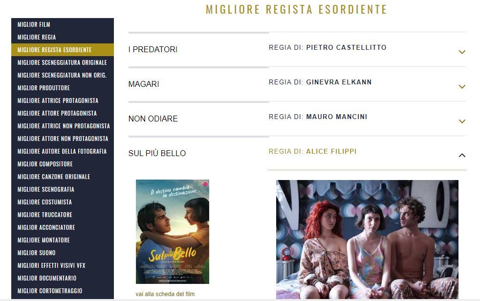 La regista monregalese Alice Filippi è in corsa per il David di Donatello con "Sul più bello" (Eagle Pictures), il suo primo film, uscito a ottobre 2020 e in testa al botteghino prima della chiusura delle sale cinematografiche.