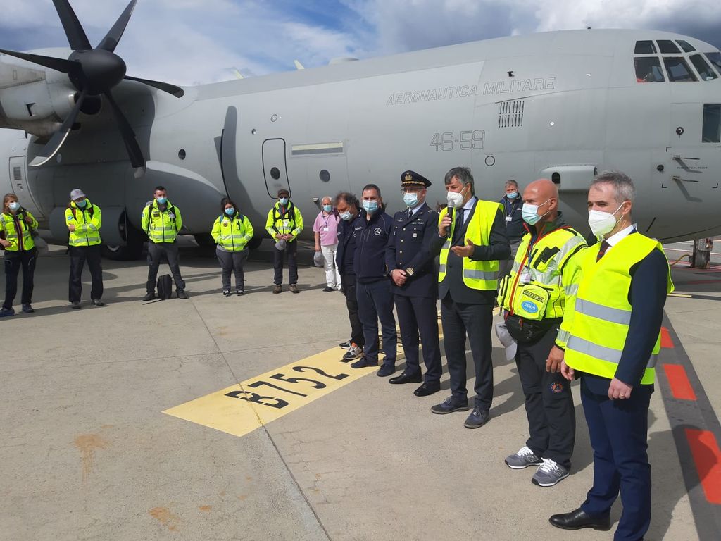 Personale e materiali sono stati imbarcati su un C-130 messo a disposizione dell’Aeronautica Militare, grazie al supporto offerto dal Ministero della Difesa nelle attività di contrasto alla pandemia, disposte dal Capo di Stato Maggiore della Difesa e dirette dal Comando Operativo di vertice interforze.