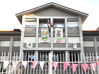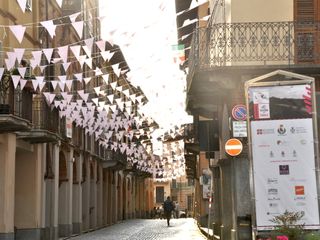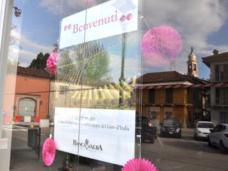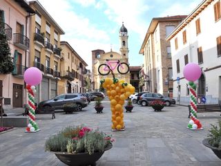 Illuminato coi colori dell’evento – grazie al progetto promosso da Egea in sette centri del territorio toccati dal Giro – è ormai da settimane il campanile della chiesa del Sacro Cuore, come lo sono le strade, i totem e le vetrine dei negozi del centro e non solo, dalla centrale via Roma a piazza Italia, passando per i locali dell’Enoteca Regionale del Roero e per le piazze San Bernardino e Trento e Trieste, da dove i corridori, dopo lo strappo al 18% di pendenza delle "Calcine" di Guarene e quello di località Occhetti a Monteu Roero, transiteranno in arrivo dai Tre Rivi, prima dell’arrivo allestito in viale del Pesco, la via delle scuole, anche queste vestite a festa per l’occasione.