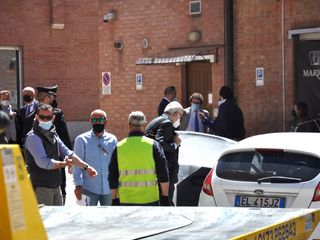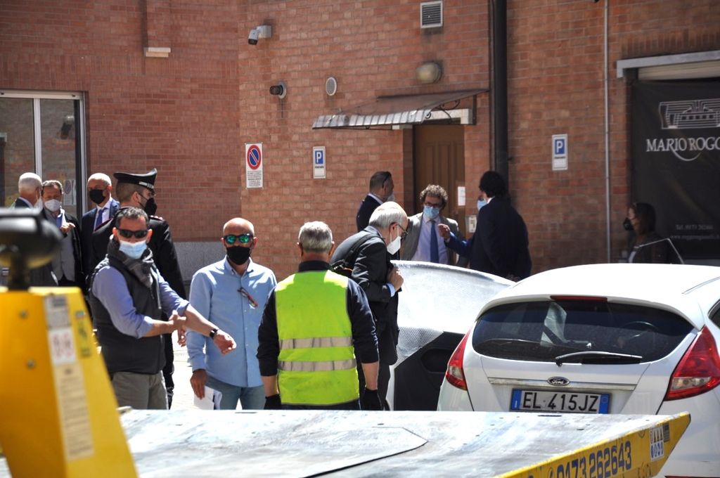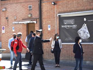 Iniziati verso le 12 gli accertamenti dentro e fuori dal negozio di via Garibaldi, teatro dell’assalto tentato dai banditi e della sparatoria che ne era seguita