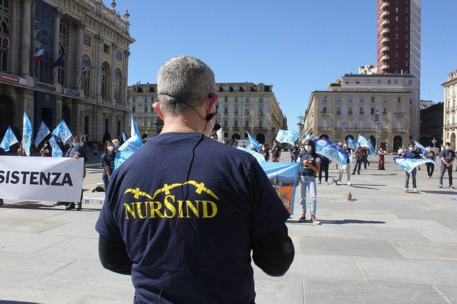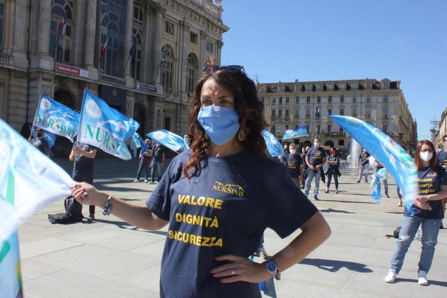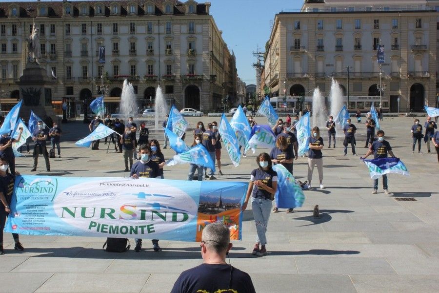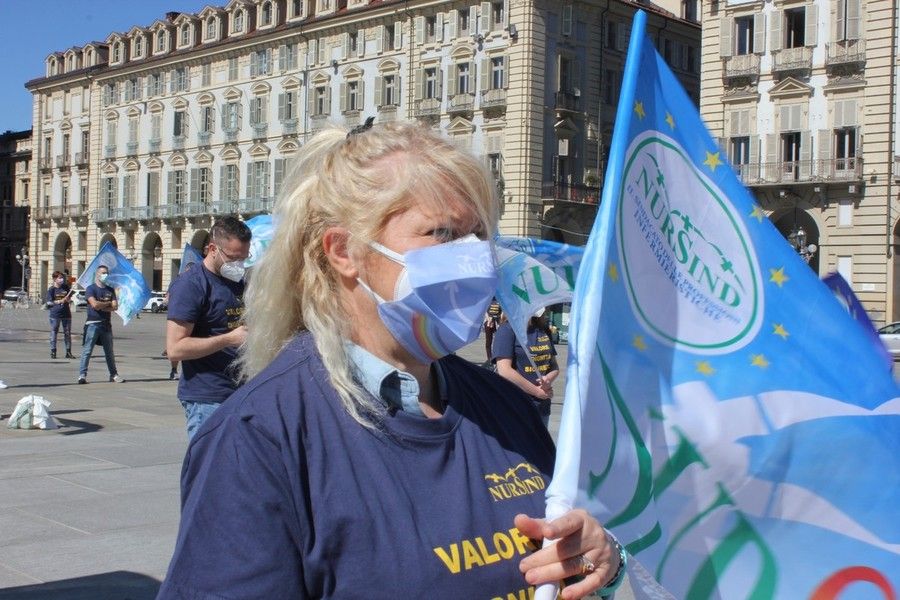 “Vogliamo riforme e assunzioni, perché ad uccidere non è stato solo il virus ma è anche per colpa di un sistema sanitario fragile”. Queste le rivendicazioni portate in piazza a Torino degli infermieri del sindacato Nursind, che hanno manifestato in piazza Castello questa mattina davanti alla sede della Regione Piemonte.