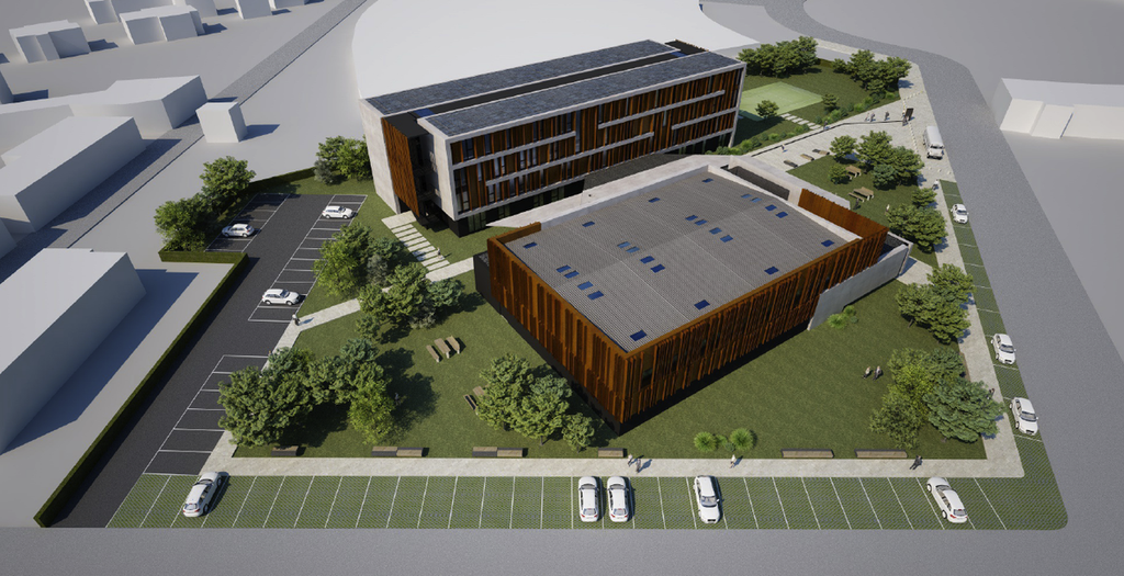 "Un investimento", tornando a un’immagine richiamata dal sindaco ("perché, come poche altre, quelle sulla scuola sono spese destinate a portarci un importante ritorno") che consentirà la realizzazione di un plesso costituito da due corpi principali: una prima ala di quattro piani (oltre a un seminterrato destinato a soddisfare il forte fabbisogno di spazi a magazzino dell’istituto tecnico), ognuno dei quali dotato di 970 metri quadrati di aule, laboratori e servizi, collegati tra loro da un ascensore centrale; e una seconda, dall’altezza minore, collegata alla prima da un atrio a forma triangolare, nella quale sorgeranno un auditorium e una palestra da 850 metri quadrati, collegati alla scuola ma dotati anche di accessi indipendenti, così da poterne consentire la fruizione anche al di fuori dall’orario e dell’utilizzo prettamente scolastico.