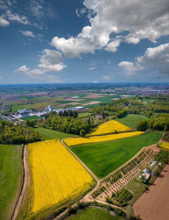 Allargando la prospettiva, si arriva fino ai Terrapini, dove è possibile ammirare l’Eldorado dei campi di colza in fiore, immortalati in un sensazionale scatto aereo da Tino Gerbaldo.