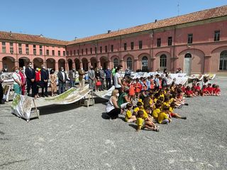 A coordinare le scuole, la dottoressa Laura Della Valle, che ha introdotto la professoressa Marina Pepino e la studentessa Vera Morino, del Liceo Artistico “Pinot Gallizio”, i cui allievi dell'ultimo anno sono stati coinvolti in un concorso di idee per la realizzazione del logo di DNAlba. A primeggiare, quello della giovane braidese. Sempre parlando di scuole, i bambini delle materne sono stati coinvolti - per un omaggio a Pinot Gallizio - nella realizzazione di decine di metri di pittura su tela, esposte nel Cortile della Maddalena.