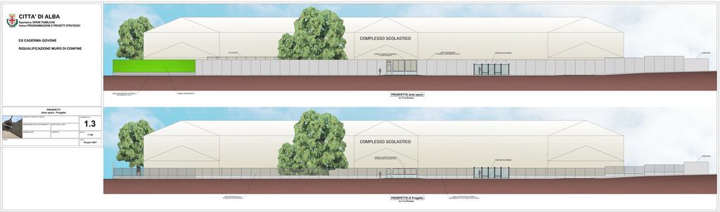 L’Amministrazione della capitale delle Langhe intenderebbe ora percorrere la stessa strada per cofinanziare la rimozione degli oltre cento metri dell’antiestetico muro in calcestruzzo che agli inizi degli anni '80 delimita sul lato di corso Europa l’ex complesso militare – ora città studi nella quale hanno sede i licei Cocito e Gallizio – e la sua sostituzione con una soluzione meno impattante e maggiormente armonizzata a un contesto urbano nel quale si attende peraltro anche l’ultimazione della passerella pedonale che dovrà collegare l’area alla stazione ferroviaria.