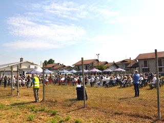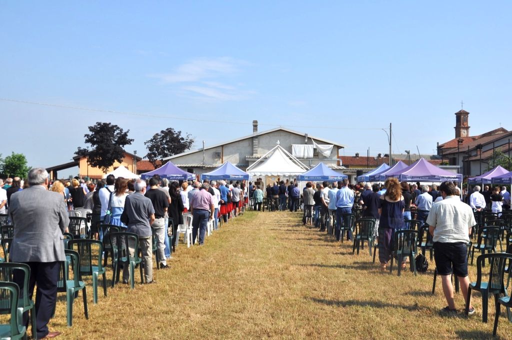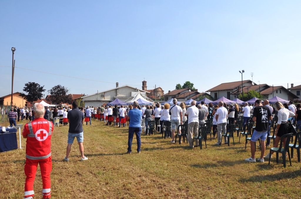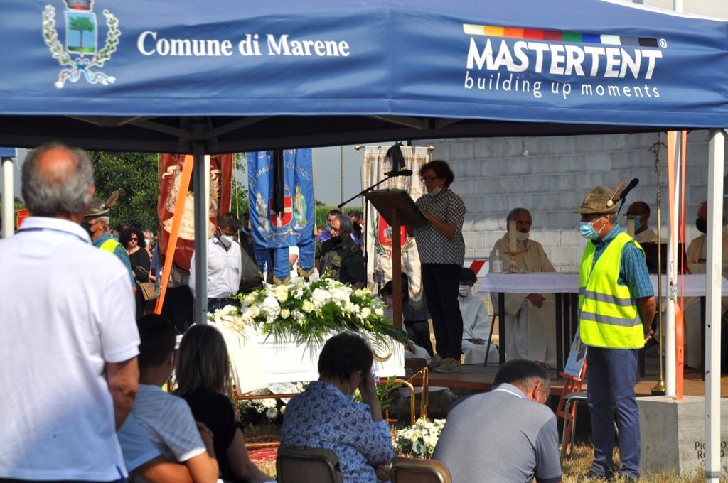 Oltre duecento le persone che si sono così riunite nel campo da calcio della bocciofila, allestito per le esequie grazie anche all’intervento delle amministrazioni comunali e delle associazioni degli alpini e della protezione civile dei due comuni, che insieme a quello di Carmagnola hanno intanto proclamato il lutto cittadino e voluto presenziare ai funerali con i rispettivi sindaci e numerosi amministratori.