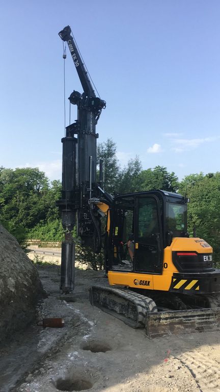 L’intervento riguarda la realizzazione di una struttura di pali immorsati nella marna, collegati da una trave in cemento armato che sostiene un muro di contenimento del versante instabile. Successivamente tale paramento verrà rivestito in pietra locale per conferire un aspetto adeguato al contesto e per favorirne l’inserimento paesaggistico. Verrà inoltre sistemata la coltre superficiale di terreno per consentire l’attecchimento naturale di piante e vegetazione autoctone.