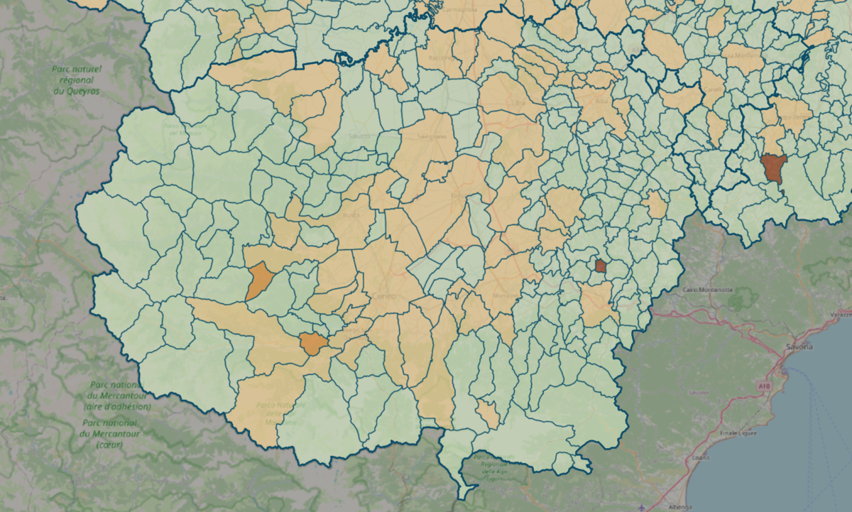 Tutti sotto i 10 casi per comune i municipi della Granda. Eccezion fatta per il capoluogo Cuneo e Bra.
