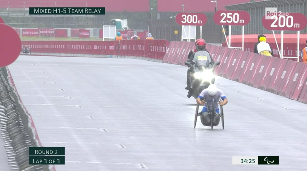 Una gara fantastica, quella che da pochi minuti si è conclusa sul circuito del Fuji a Tokyo, dove uno strepitoso Diego Colombari ha trascinato il terzetto composto anche da Luca Mazzone e Paolo Cecchetto sul posto più alto del podio della gara Team Relay di handbike su strada.
